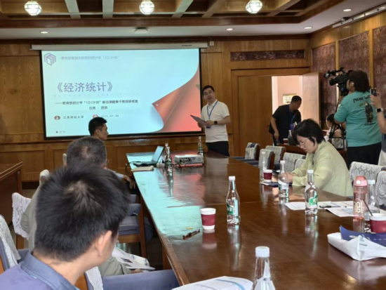 冯凌秉代表我校教育部统计学101计划《经济统计》教材撰写组进行了一个半小时的授课。他紧密结合我校在经济统计、国势研究等领域的特色优势,系统介绍了《经济统计》教材和课程的整体构建思路、核心章节内容、教学重难点以及特色亮点设计,并展示了部分章节内容。整体授课内容详实,获得了与会专家与教师的高度评价与认可。
