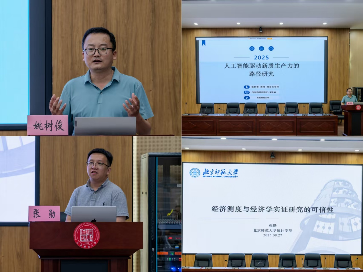 《统计与信息论坛》主编姚树俊教授做了题为《人工智能驱动新质生产力的路径研究》的报告,通过具体的事例讲解了人工智能方向论文写作的角度选择和写作思路。北京师范大学科研院副院长兼社会科学处处长张勋教授做了题为《经济测度与实证研究的可信性》的报告。他结合自身研究经历从多角度分析了该研究的意义。自由交流环节,各专家学者展开了热烈的讨论,学术氛围浓烈。